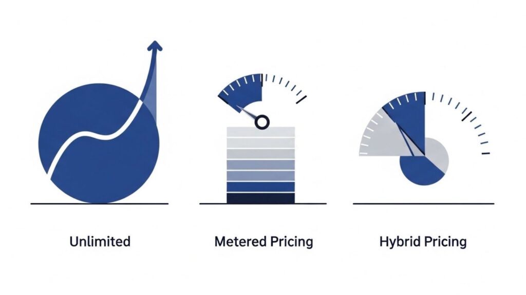 Should I prioritize unlimited or metered pricing models? Offer both options to accommodate different client needs. High-volume clients typically prefer unlimited pricing for budget predictability, while variable-usage clients benefit from metered models.