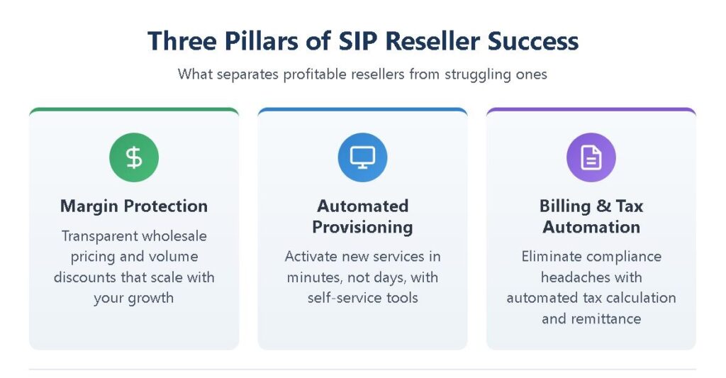 • Margin protection, automated provisioning, and billing/tax automation are the three pillars that separate profitable resellers from struggling ones.
