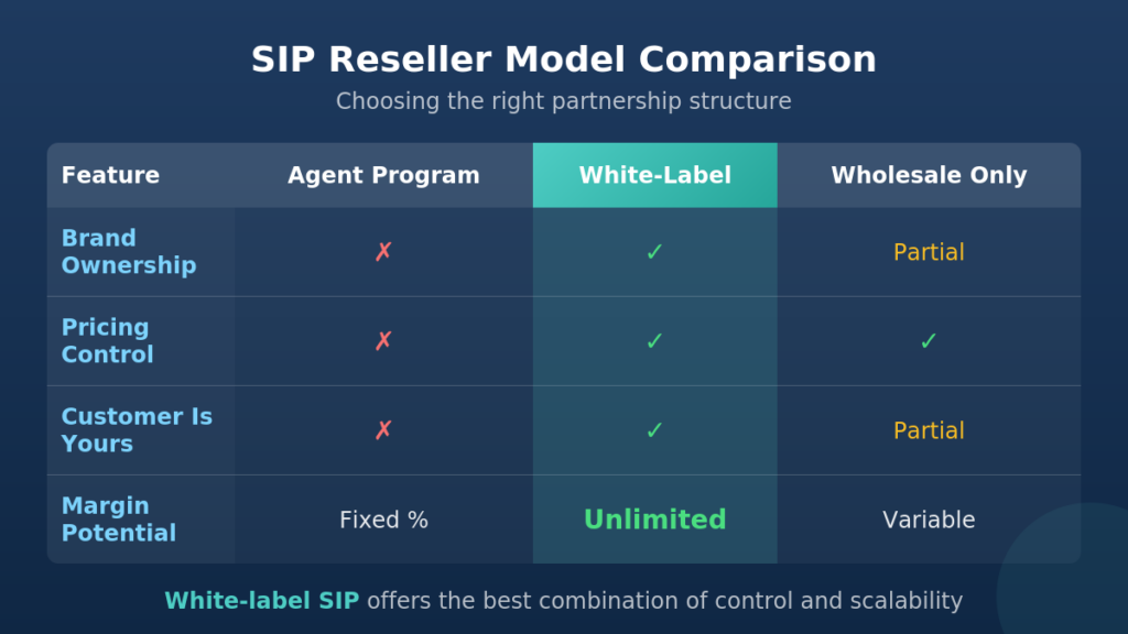 Resellers have multiple options for entering the SIP trunking market. Understanding how white label compares to alternatives helps you choose the right approach for your business.